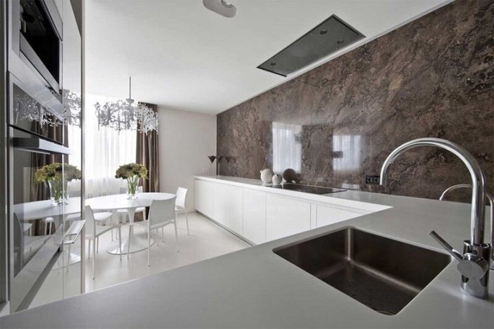 Gạch vân đá được dùng nhiều để ốp tường bếp bởi: