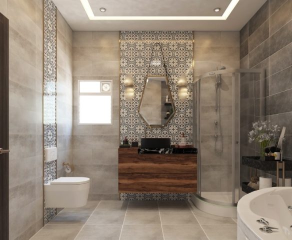 5. Họa tiết và vân gạch – chọn thế nào để phòng tắm không bị “rối mắt”?